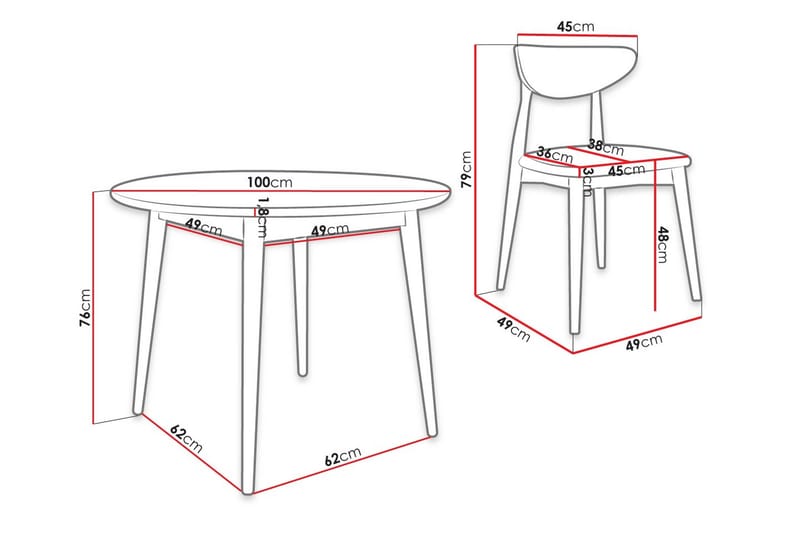 - Höjd (cm) Bord: 76 cm