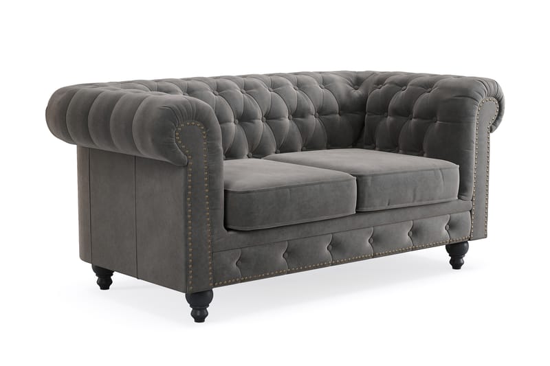 Manor House Chesterfield Deluxe 2-sits Soffa Mörkgrå