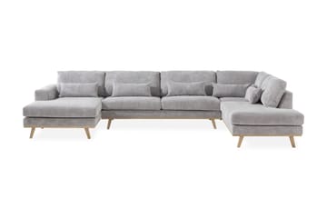 Trend 4-sits Högervänd U-formad Soffa med Divan och Schäslong i Sammet, Ljusgrå