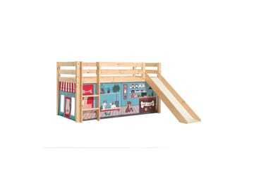 Halvhöjdssäng med gardin Pino Spring Grå, Grå, Med rutschkana, Vår, Fjäder, Utan fickor, Grå, Grå, Med rutschkana, Vår, Fjäder, Utan fickor