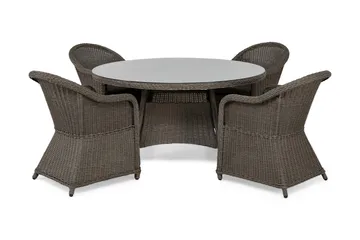 Marcus Matgrupp Utomhus 140 Rund + 4 Light Fåtöljer m Dyna, Grå