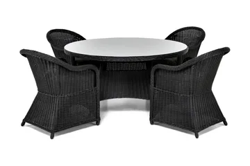 Thor Matgrupp Ø140 + 4 Thor Fåtölj m Dyna, Svart/Svart/Svart