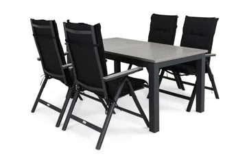Monaco Matgrupp Utomhus 90x152-210 + 4 Monaco Light Stol m Dyna, Svart/Grå