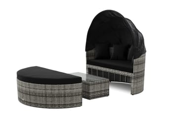 Våra trendiga solsängar med tak är inte bara riktigt snygga, de ger dig även en känsla av lyx och exklusivitet. Med hög kvalitet kombinerar de stil och funktion på bästa sätt, en utomordentlig plats för såväl vila som umgänge. När du köper en solsäng med tak från oss får du helt enkelt en vilosäng under bar himmel som är både estetiskt och ergonomisk utformad för att ge dig maxiamal njutning av sommaren. Det reglerabara soltaket tillåter dig att njuta av solen, samtlidigt som du kan välja att komma undan dess starka strålar när så önskas. Praktiskt och lyxigt! Kanske är du ute efter en stilren vit solsäng, en uttrycksfull svart solsäng eller en solsäng i grå konstrotting? Vi har samlat ett brett utbud av solvagnar i olika former, material och färger så att du kan hitta en som passar just din smak och stil. När du handlar av oss på Furniturebox vill vi att du ska känna dig 100% nöjd. Vi har alltid fri hemleverans och 365 dagars öppet köp!