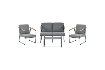 Loungegrupp Vezzana Grå/ljust trä/svart, Grå/ljust trä/svart