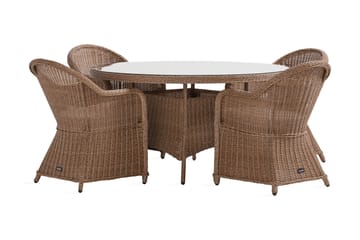 Marcus Matgrupp Utomhus 140 Rund + 4 Light Fåtöljer m Dyna, Grå