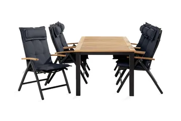 Las Vegas Matgrupp Utomhus 152-210x90 + 4 Stolar m Dyna, Svart/Teak/Vit